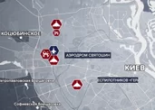 В Киеве поражены как минимум четыре объекта. Один из них располагался на территории складов в районе аэродрома Святошин.