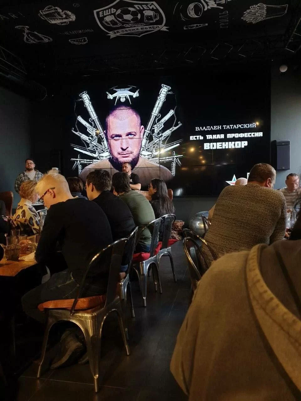 "Было под 100 человек. Одна за столиком сидела некая Настя, говорит: "я художница, хотела делать героику СВО, но это непросто. Поэтому я сделала ваш бюст пока только. Он в гардеробе. Идет туда, берет большую коробку, отдает ему, там что-то позолоченное". Он шутит - мол, надеюсь вы не сделали меня толстым. Говорит спасибо, ставит рядом. Она садится на свое место, проходит минуты три. Взрыв, хлопок, пламя, все бегут. "Настя", казалось, не ушла заранее.»