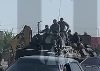 Бронетехника "Ахмата" входит в Ростов, занятый подразделениями ЧВК "Вагнер".