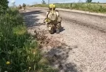 Под ударами российских артиллерии и авиации сначала передовые отряды неуверенно продвигаются вдоль дороги к Жеребянкам. А затем видео обрывается, и далее противник уже спешно ретируется обратно в Пятихатки.