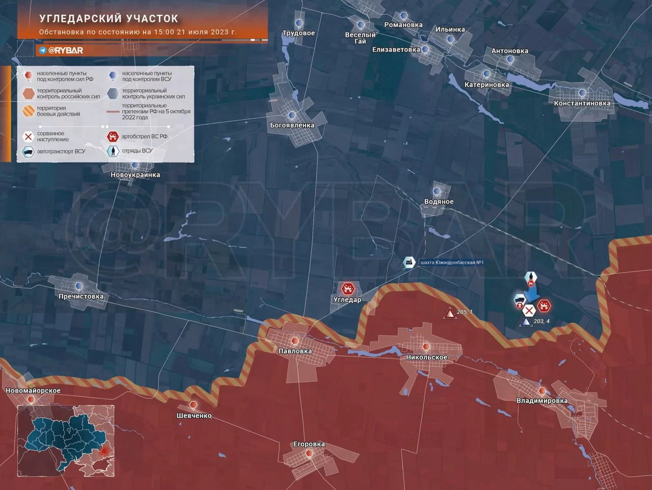 Угледарский участок, Обстановка по состоянию на 15.00 21 июля 2023 года