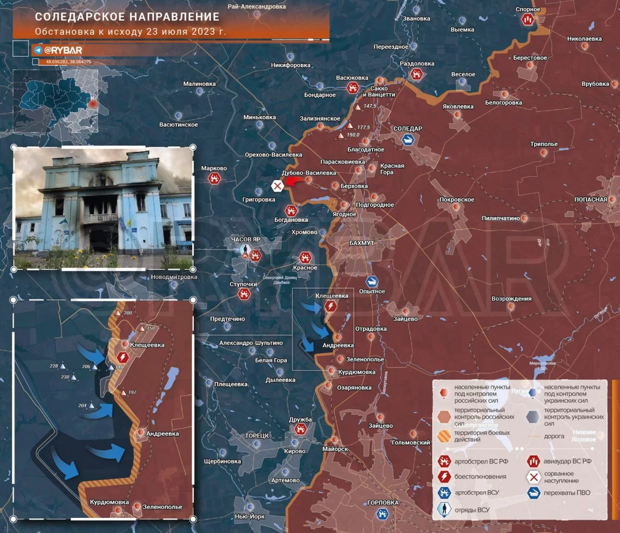 Соледарское направление. Обстановка к исходу 23 июля 2023 года