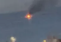 После поражения огнём с корабля ФСБ вражеский морской дрон долго горел в море у Новороссийска