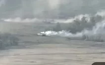 На первом видео украинские БМП штурмуют русские позиции, но им на встречу выехал русский танк, уничтоживший две из них.