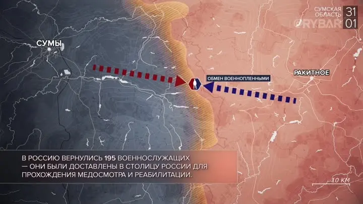 ▪️В приграничье между Белгородской и Сумской областями состоялся очередной обмен военнопленными. В Россию вернулись 195 военнослужащих — они были доставлены в столицу России для прохождения медосмотра и реабилитации.