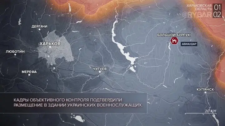 ▪️Кроме того, российские бомбардировщики поразили военный госпиталь в пгт Большой Бурлук. Кадры объективного контроля подтвердили размещение в здании украинских военнослужащих.