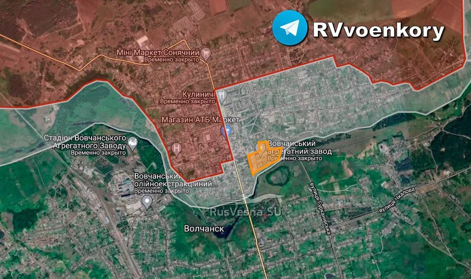 ➖Также ВС РФ заняли здания на северо-востоке Волчанска в районе Агрегатного завода, продвинувшись на 200 м вглубь города, и продвинулись к востоку от Волчанска.