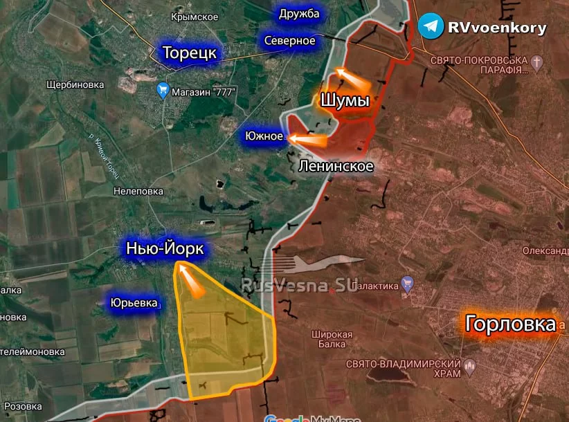 Армия России прорвалась на окраины Торецка: заняла Ленинское, вошла в Южное и продолжает штурм Нью-Йорка