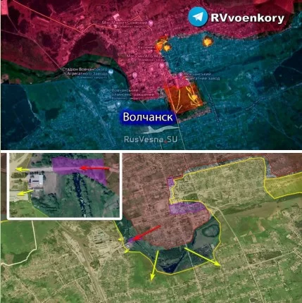 "По Волчанску русским группам удалось перейти реку Волчью южнее Агрегатного завода. Также бои продолжаются за высотки на севере города, немного восточнее продолжается плотный, огневой контакт с противником, работают дроны", - вчера писали боевики