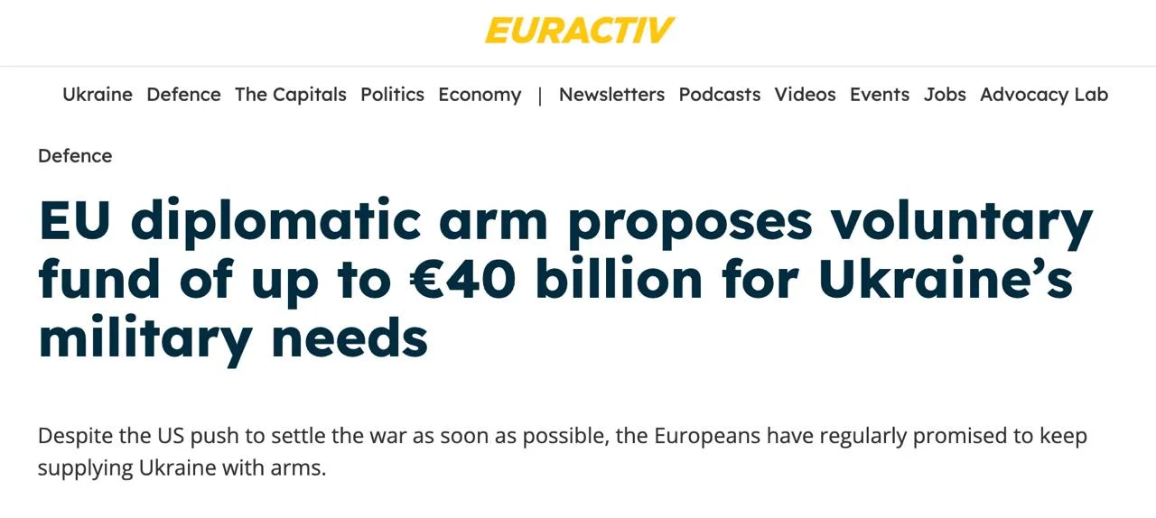 Евросоюз просит желающих добровольно оказать Украине военную помощь в 20-40 млрд евро, создав специальный фонд — Euractiv
